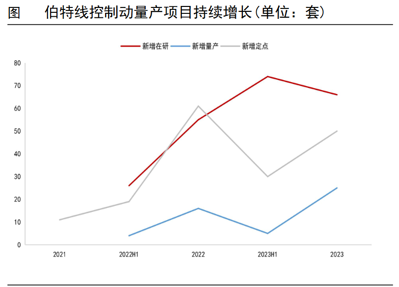 从本土第二大线控制动系统厂商伯特利的定点项目数量就可以看出这个细分领域有多火热。