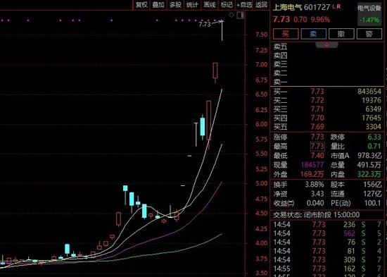 三连板又三连板,上海电气(维权)市盈率已高同业超10倍!
