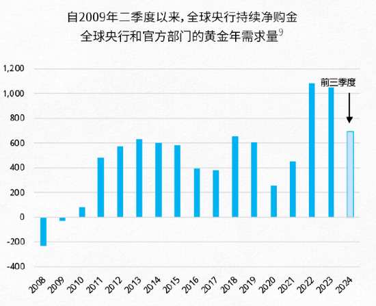根据世界黄金协会的调查和分析,目前央行的购金态势将继续保持。世界黄金协会认为,超过500吨(近似长期趋势)的购金需求仍将对黄金表现产生积极影响,而2025年的全球央行需求预计将超过这一水平,但倘若需求低于这一水平,则会给黄金价格带来额外的压力。