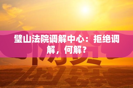 璧山法院调解中心作为司法体系中的重要一环,其主要职能是在诉讼前或诉讼中,为当事人提供一种高效、便捷的纠纷解决途径。它旨在通过中立第三方的协调,促使双方自愿达成协议,从而化解矛盾,节省司法资源,并可能修复双方关系。当您遇到“璧山法院调解中心:拒绝调解,何解?”这一情况时,首先需要理解,调解本身遵循自愿原则。无论是申请调解还是接受调解方案,都需基于当事人的真实意愿。调解中心无权强制任何一方进行调解或接受调解结果。因此,“拒绝调解”本身是法律赋予当事人的合法权利,可能是出于对调解方案不满意、希望直接进入诉讼程序、或对调解过程有疑虑等多种原因。