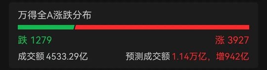 截至发稿,上证指数跌0.17%,深证成指涨0.59%,创业板指数涨近1%。全市场超3800只个股上涨,两市成交额较前一交易日放大超900亿元。
