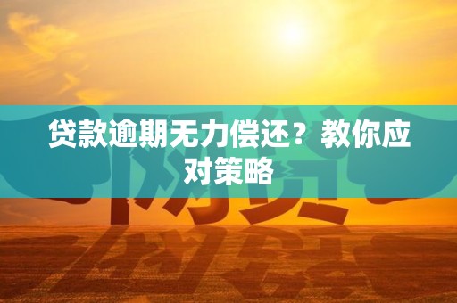 生活中,很多人都会遇到贷款逾期无力偿还的情况。是信用卡账单没能按时还款,还是网贷出现拖欠,大家都会感到压力山大,甚至有些人会陷入焦虑和无助。其实,贷款逾期无力偿还?教你应对策略,方法还是有的,关键是别放弃,一步步来解决问。今天,我就来跟大家聊聊,遇到贷款逾期无力偿还时,我们应该如何应对,帮你走出困境。