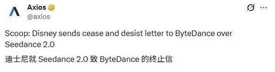 根据Axios获得的信件副本,当地时间2月13日,华特迪士尼公司已向字节跳动发函,指控对方在训练和开发Seedance 2.0模型时未经许可使用迪士尼作品,要求字节跳动“停止侵权且不得再犯”。
