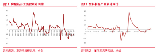 2024年聚烯烃下游需求依然保持较低增速,终端需求低迷是聚烯烃下游开工降低的主要原因。国家统计局发布2024年1-10月份全国房地产市场恢复不及预期,房屋新开工面积61226.93万平方米,同比下降22.6%;国家统计局数据显示: 2024年1-10月我国塑料制品产量累计6297.1万吨,累计增长1.8%。相关工业品的终端数据不佳直接影响聚烯烃下游需求。