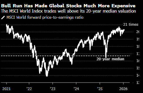 Premier Miton Investors首席投资官Neil Birrell说:“市场目前所处的估值水平,几乎容不下任何盈利增长方面的失望。如果我们开始看到对2026年盈利预期的下调,这波上涨将面临巨大风险。”