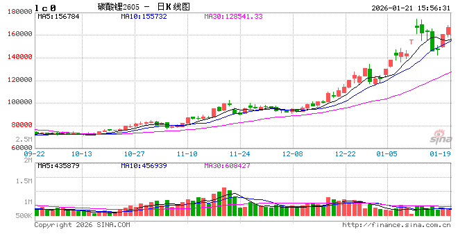 现货价格方面,电池级碳酸锂平均价下跌7000元/吨至151000元/吨,工业级碳酸锂平均价下跌7000元/吨至147500元/吨,电池级氢氧化锂(粗颗粒)下跌5000元/吨至144000元/吨。仓单方面,昨日仓单库存增加240吨至27698吨。供给端,周度产量环比增加115吨至22535吨,其中锂辉石提锂环比增加35吨至13959吨,锂云母产量环比增加20吨至2956吨,盐湖提锂环比增加40吨至3185吨,回收料提锂环比增加20吨至2435吨。2026年1月碳酸锂产量预计环比下降1.2%至97970吨。需求端,2026年1月三元材料产量预计环比下降5%至78180吨;磷酸铁锂产量预计环比下降10%至363400吨;2026年1月三元动力电池产量预计环比下降6.15%至28.7GWh,铁锂动力预计环比下降9.77%至90.01GWh,铁锂储能预计环比增加0.99%至63.15GWh。库存端,周度碳酸锂社会库存环比增加337吨至109942吨,其中下游环比下降2458吨至36540吨,其他环节增加2080吨至55020吨,上游环比增加715吨至18382吨。