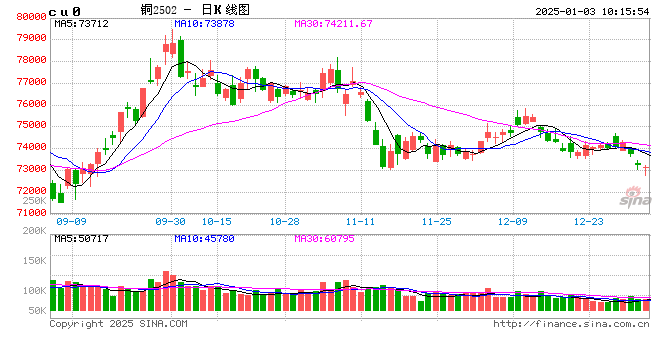隔夜LME铜窄幅震荡,收盘上涨0.22%至8801美元/吨;SHFE铜主力收跌0.15%至73190元/吨;国内现货进口窗口持续打开。宏观方面,美国12月Markit制造业PMI终值49.4,继续陷入萎缩,高于预期48.3,但低于前值49.7。美国12月28日当周首申失业金人数21.1万人,低于预期的22.1万人和前值21.9万人,显示出劳动力市场的弹性。库存方面,LME库存下降50吨至27.135万吨,SHFE铜仓单增加1270吨至19206吨;1月份进入年关预计需求将进入季节性下降期以及社会库存也会实现缓慢累库,关注累库量。国内铜需求进入季节性淡季,这意味着相对价格(升贴水)可能持续表现偏弱,但绝对价格依然存在分歧,因为在此期间宏观并不一定一味表现偏悲观,市场会博弈春节后的预期,节前则关注内外金融市场表现可能会左右一定市场情绪。因此暂时仍以铜价区间震荡甚至震荡偏弱之势看待。