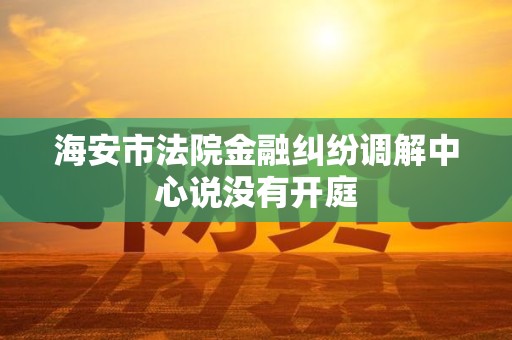 海安市法院金融纠纷调解中心说没有开庭,是基于目前案件还处于调解阶段。调解,争议双方有机会达成一个双方都能接受的解决方案,这样既节约了时间和费用,又减少了法院负担,让案件更快得到合理处理。