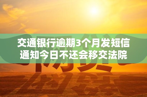 交通银行对逾期客户的催收一般分为电话联系、短信通知、函件催告,直至法律诉讼流程。交通银行逾期3个月发短信通知今日不还会移交法院,属于银行催收流程中的关键节点。此期间,银行通常会多次电话和短信进行提醒;短信内容会逐步增加法律风险提示,最终明确告知“今日不还款即移交法院处理”。