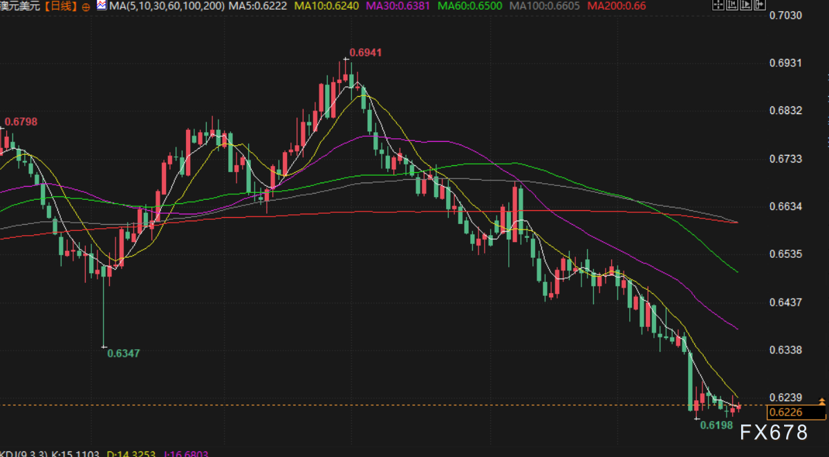 对风险敏感的澳元和纽元走势不稳,徘徊在两年低点附近。澳元最新处于0.6229 美元左右,今年料将下跌 8.7%,创2018 年以来最弱年度表现。纽元在0.5644美元附近,2024年将下跌近11%,创2015年以来最弱表现。澳元与纽元度过艰难一年,未来将面临特朗普关税风险。