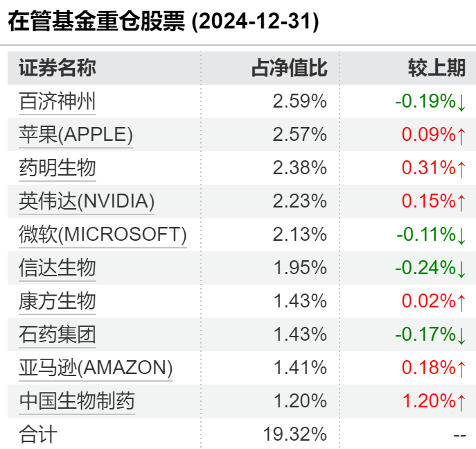 后市观点:2025年的基本面会持续改善,内需情况会好于2024年。配置主要集中在医药、互联网、消费、科技和高端制造等板块。