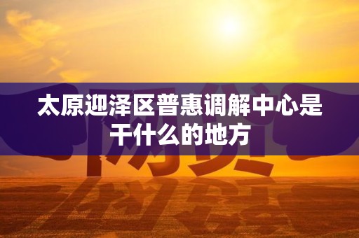 太原迎泽区普惠调解中心是干什么的地方?为什么它重要?