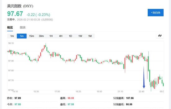 美元跳水。美元指数迅速转跌,并在美股早盘跌破97.60刷新日低,日内跌逾0.3%,跌离欧股盘初靠近98.10所创的1月23日以来高位。