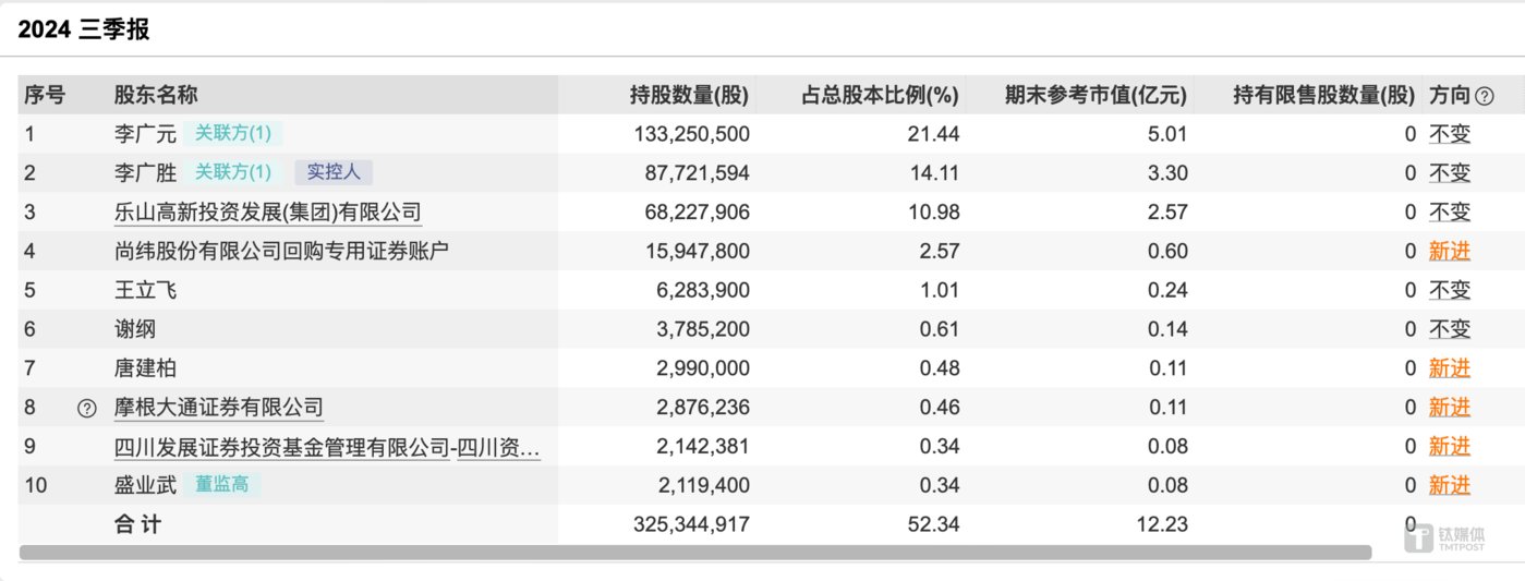 (尚纬股份十大股东明细,截至2024年三季度末)