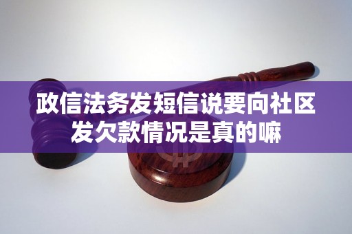 一句话,政信法务发短信说要向社区发欠款情况是真的嘛,这类短信是真的发了,但通常只是催收手段之一,实际向社区公开欠款信息的行为是违规的,也不太可能真正实施。大家不要被这种短信吓倒,更不要选择逃避和躲藏,积极面对,寻求合法途径解决还款问,保护自己的合法权益。